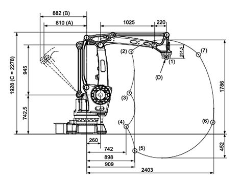 | 最大工作范圍 | 2278mm | ||